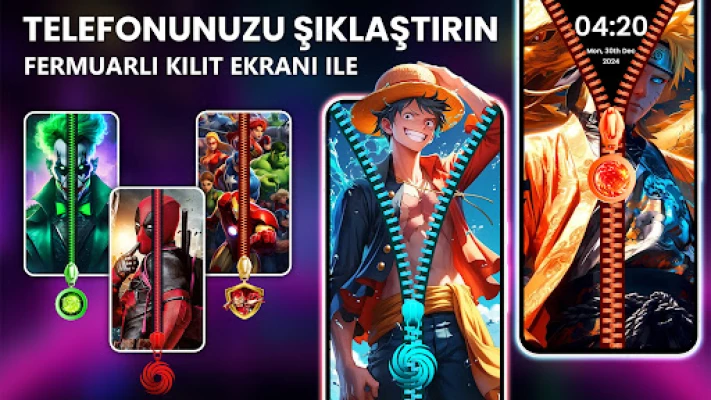 Zipper Lock Screen Wallpaper sadece estetik bir dokunuş sunmakla kalmaz, aynı zamanda cihazınıza benzersiz bir kimlik kazandırır. Herkese hitap eden çeşitlilikteki fermuar stilleri ve çarpıcı 3D tasarımlar sayesinde, telefonunuzu sadece bir cihaz olmaktan çıkarıp kişisel ifadenizin bir parçası haline getirebilirsiniz. Kilit ekranınızı, tarzınızı yansıtan, hem şık hem de pratik bir arayüze dönüştürerek her kullanımda fark yaratın.