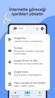 Modern çağın getirdiği dijital dünyanın kapılarını aralarken, çocuklarınızın bu alanda güvenle keşfetmesini sağlamak her ebeveynin önceliğidir. Family Link, çocuklarınızın ekran deneyimlerini dengelemek ve onlara sağlıklı dijital alışkanlıklar kazandırmak için kapsamlı bir çözüm sunar. Bu uygulama ile çocuğunuzun günlük ekran süresini hassasça belirleyebilir, okul saatleri veya dinlenme zamanları için özel programlar oluşturabilirsiniz. Hangi uygulamaları ne kadar kullanabileceklerine dair esnek kurallar koymak da mümkün; ister belirli bir uygulama için zaman sınırı belirleyin, ister eğitici içeriklere sınırsız erişim tanıyın, kontrol tamamen sizde. İstenmeyen uygulamaları engelleme kolaylığı da Family Link'in sunduğu önemli bir avantajdır.
